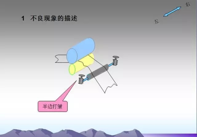 輥緊固螺釘松動原因造成各輥的平行狀態(tài)被破壞,此時會出現(xiàn)打皺現(xiàn)象。這種情況下,只要及時調(diào)整并緊固好即可。