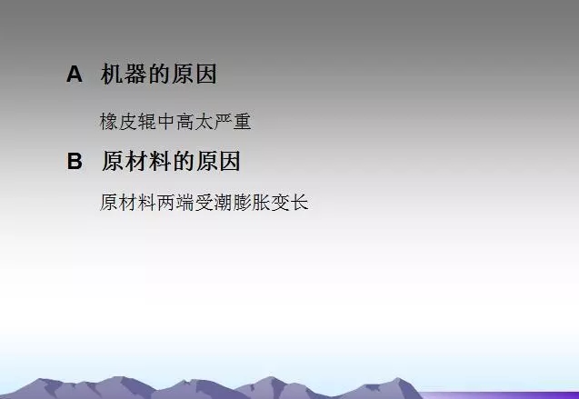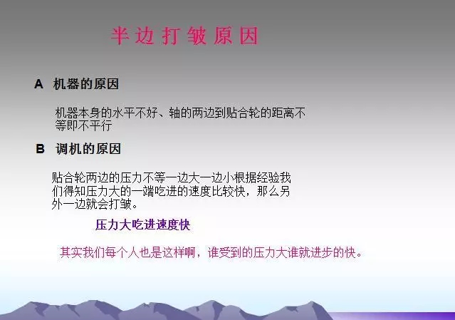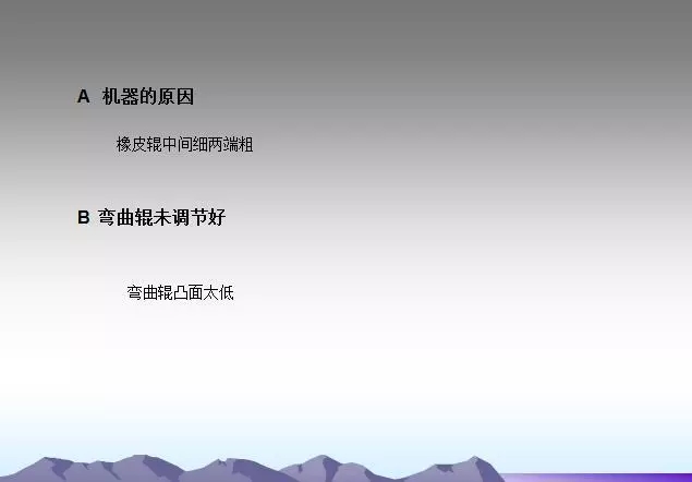 背輥及各過輥粘有異物或使用過多的水。需要經(jīng)常檢查,及時發(fā)現(xiàn)并清理,并注意不要損傷輥面。